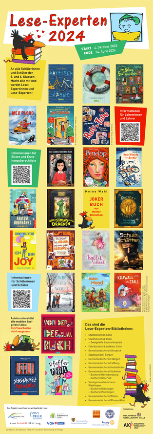 Plakate der bisherigen Lese-Experten-Projekte mit allen getesteten Büchern
